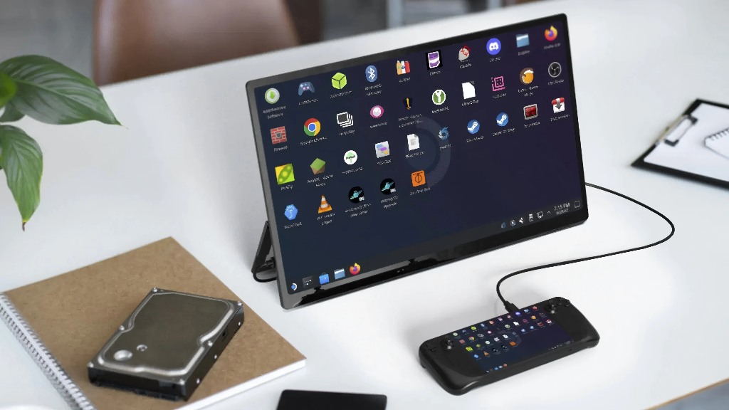 Portas: 2x USB-C, 1x Mini HDMI, 1x Áudio 3,5 mm, 1x USB OTG